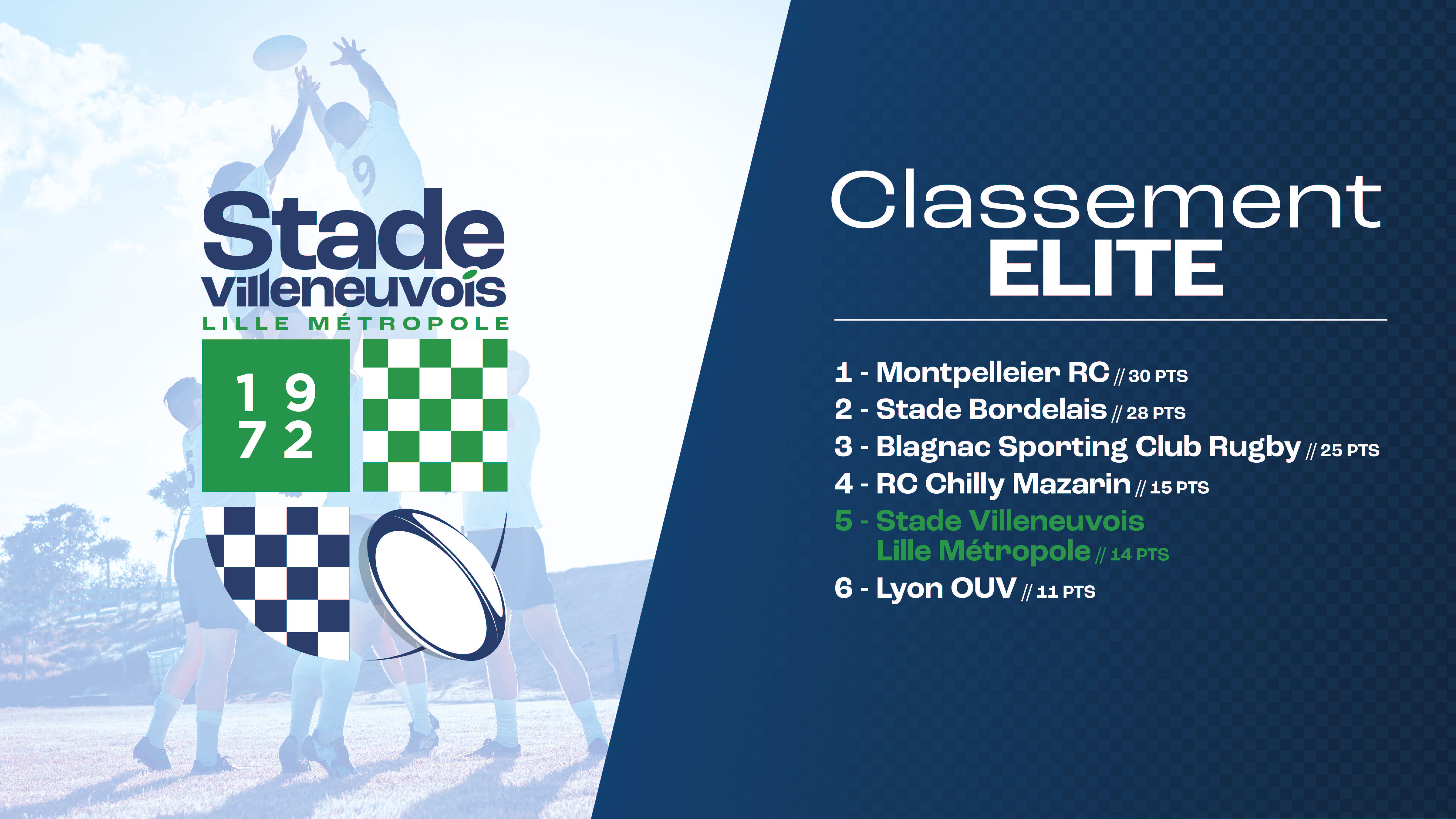Pour apporter plus de lisibilité, nous avons également proposer un nouveau naming : Stade villeneuvois Lille métropole